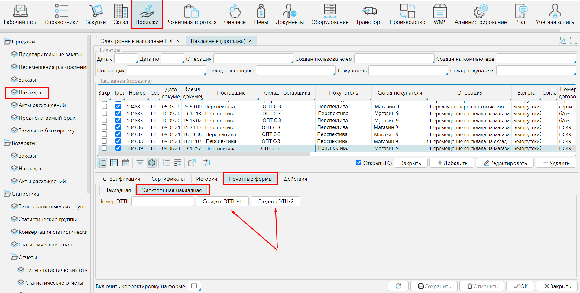 Электронная накладная выписывается на основе накладной (продажа) на форме  Продажи - Накладные